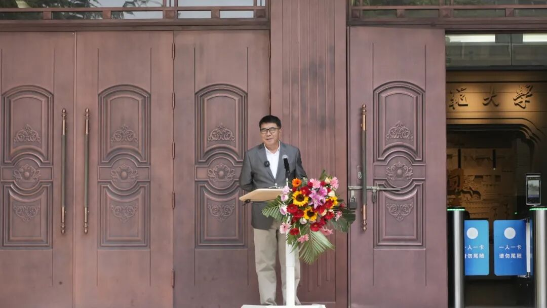 開幕式最后,徐兆壽致答謝詞。他說(shuō),做這次展覽的初衷,是因?yàn)樵谶@個(gè)數(shù)字、AI和音視頻的傳播時(shí)代,書寫可以體悟中國(guó)文化的心法。他自三十六歲起開始與孔子、老子、鳩摩羅什等圣賢結(jié)緣,五十歲以后又遇見了伏羲、大禹,正是如此多的先賢讓他有了弘道的愿望。同時(shí)特別感謝樓宇烈、莫言、賈平凹、連輯、李敬澤等眾多文化名家的支持,共同呼吁大學(xué)生抄寫經(jīng)典,傳承中華文脈。最后,他呼吁更多的人拿起毛筆或鋼筆,重新書寫,傳承經(jīng)典,弘揚(yáng)傳統(tǒng)文化。