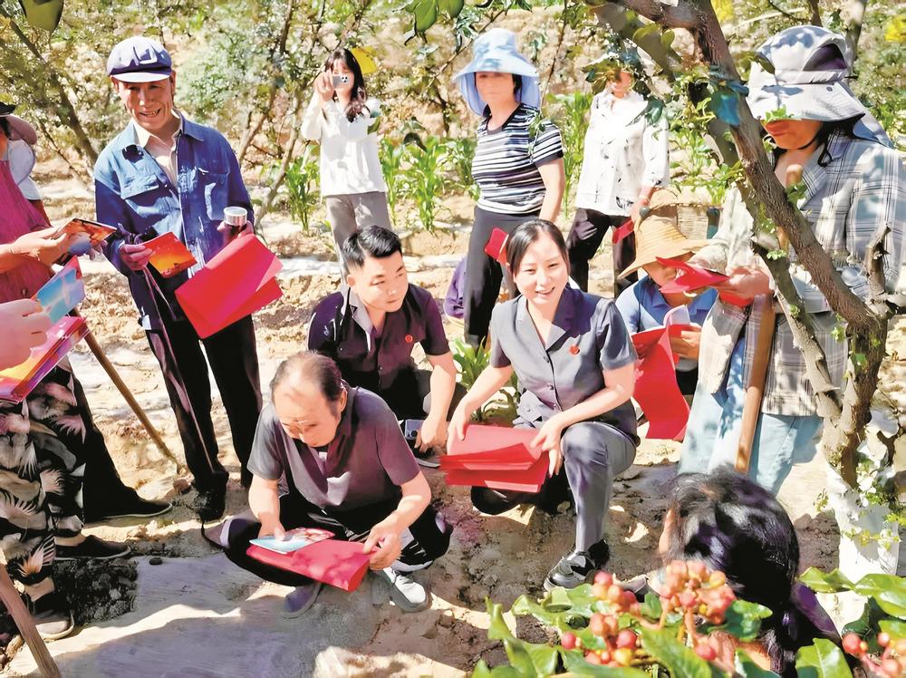 安化法庭干警走進(jìn)花椒種植園,與村民圍坐交流,現(xiàn)場答疑解惑。 武都區(qū)法院供圖