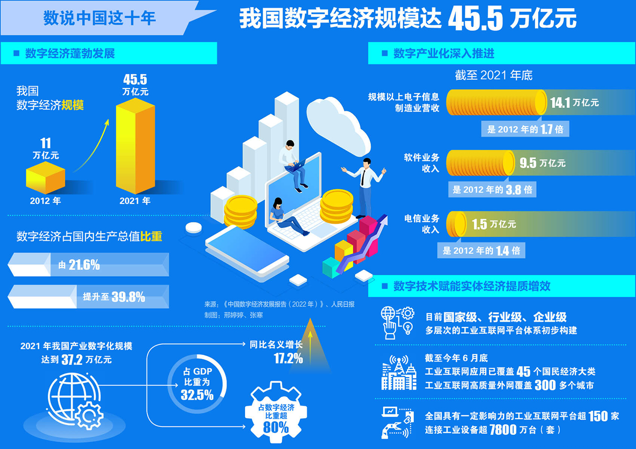 數(shù)說中國這十年丨我國數(shù)字經(jīng)濟規(guī)模達45.5萬億元