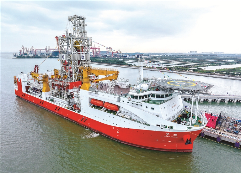 “十四五”時(shí)期,我國持續(xù)加強(qiáng)關(guān)鍵核心技術(shù)攻關(guān)和成果應(yīng)用,加快高端裝備、先進(jìn)制造等領(lǐng)域關(guān)鍵技術(shù)攻關(guān),推動(dòng)傳統(tǒng)產(chǎn)業(yè)向高端化、智能化、綠色化轉(zhuǎn)型。圖為擁有最大11000米的鉆深能力、我國自主設(shè)計(jì)建造的首艘大洋鉆探船“夢想”號(hào),該船于“十四五”時(shí)期正式入列(資料圖片)。新華社記者 劉大偉 攝