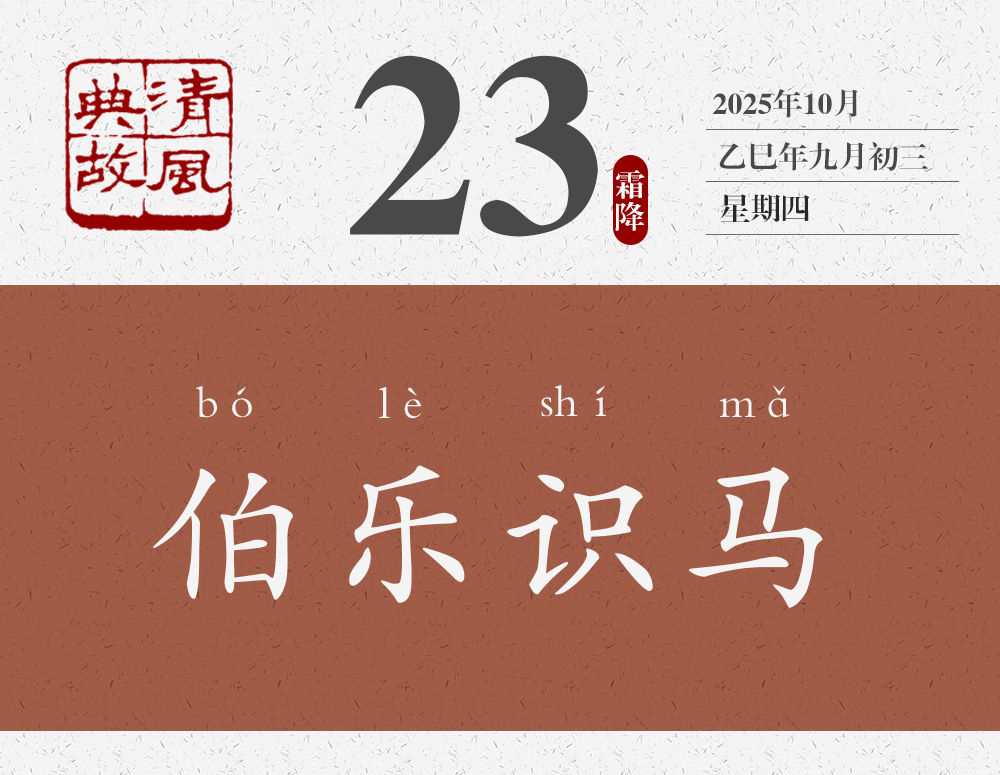 春秋秦穆公時(shí),有一個(gè)著名的相馬師叫孫陽(yáng)。因?yàn)樯裨拏髡f(shuō)中,掌管天馬的神仙叫伯樂(lè),人們?yōu)榱吮硎緦?duì)孫陽(yáng)的敬佩,就稱他為伯樂(lè)。屈原《九章•懷沙》以及《莊子•馬蹄》《列子•說(shuō)符》都曾經(jīng)提到過(guò)伯樂(lè)。《戰(zhàn)國(guó)策•楚策四》里,春申君的舍人汗明,向春申君講了一個(gè)關(guān)于千里馬的故事:“夫驥之齒至矣,服鹽車(chē)而上太行。蹄申膝折,尾湛胕潰,漉汁灑地,白汗交流,中阪遷延,負(fù)轅不能上。伯樂(lè)遭之。下車(chē)攀而哭之,解纻衣以冪之。驥于是俛而噴,仰而鳴,聲達(dá)于天,若出金石聲者,何也?彼見(jiàn)伯樂(lè)之知己也。”