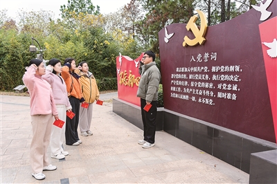 12月2日,江蘇省南京市溧水區(qū)紀委監(jiān)委組織部分青年黨員干部進行黨章學習。圖為青年黨員干部在重溫入黨誓詞。劉勝君 攝