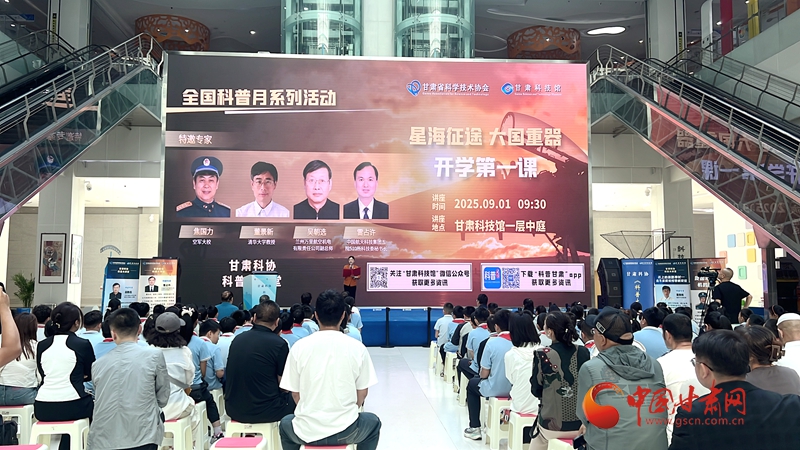 中國(guó)甘肅網(wǎng)9月3日訊(西北角·中國(guó)甘肅網(wǎng)記者 張慧雅)近日,甘肅科技館舉行科普講座,活動(dòng)特邀空軍大校焦國(guó)力、清華大學(xué)教授董景新、蘭州萬(wàn)里航空機(jī)電有限責(zé)任公司副總工程師吳朝選、中國(guó)航天科技集團(tuán)五院510所科技委秘書(shū)長(zhǎng)雷占許四位科普專(zhuān)家,為120余名學(xué)生帶來(lái)“開(kāi)學(xué)第一課”,引領(lǐng)同學(xué)們探秘國(guó)之重器。線上直播吸引62.3萬(wàn)余人次同步觀看。