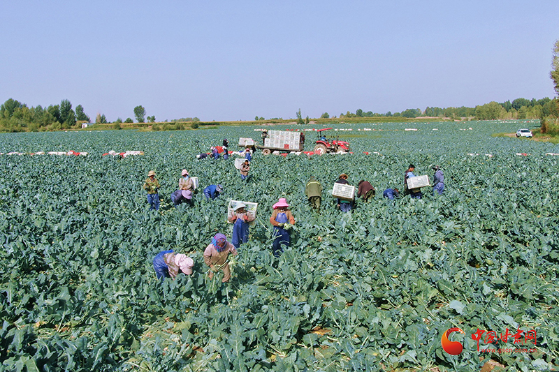 在蓼泉鎮(zhèn)絲路綠洲蔬菜分揀加工包裝配送生產(chǎn)線上,20余名工人正有序地對(duì)新鮮西藍(lán)花進(jìn)行去葉、清洗、裝箱、加冰等處理。這些經(jīng)過(guò)精加工的蔬菜即將發(fā)往南方沿海城市,成為千里之外消費(fèi)者餐桌上的美味。