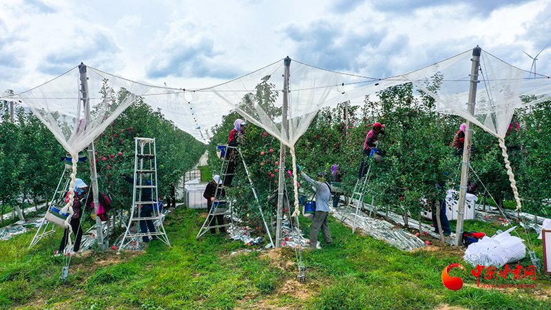 走進(jìn)果園,連片果樹郁郁蔥蔥,一個(gè)個(gè)果形飽滿、色澤鮮亮的“九月奇跡”蘋果沉甸甸掛滿枝頭,果農(nóng)們身背果簍、手持果剪,熟練又小心翼翼地采摘成熟的果實(shí),臉上洋溢著豐收的喜悅,園內(nèi)處處是繁忙又熱鬧的豐收圖景。