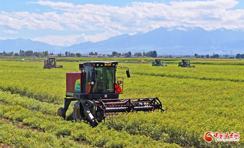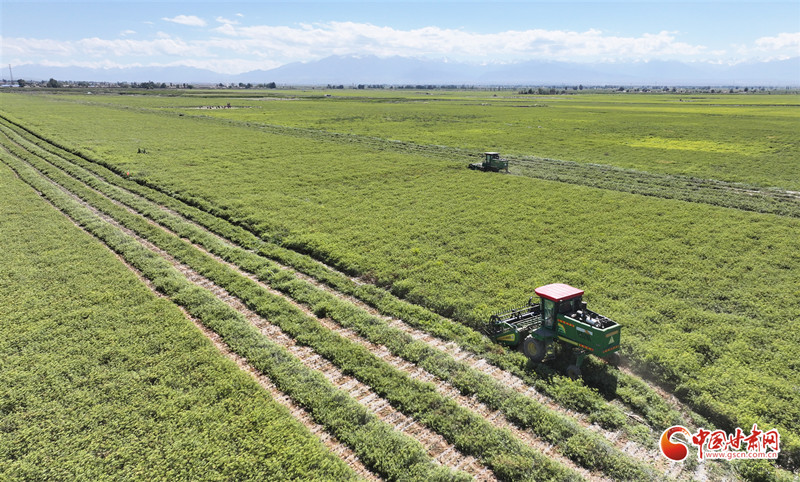 時下,在民樂縣民聯(lián)鎮(zhèn)太和村千畝茴香種植基地,種植戶利用晴好天氣,駕駛機械在田間采收茴香。