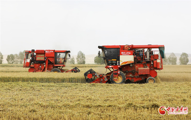 8月11日,在民樂縣民聯(lián)鎮(zhèn)顧寨村千畝連片小麥種植基地,農(nóng)機(jī)手們正在駕駛聯(lián)合收割機(jī)穿梭往返在麥田之中搶收小麥,確保小麥顆粒歸倉。