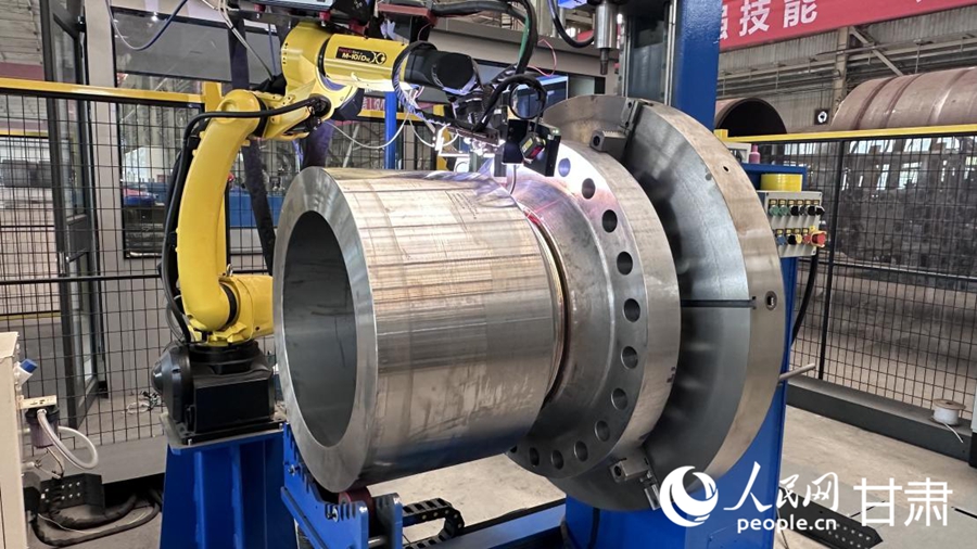 走進蘭州蘭石重型裝備股份有限公司數(shù)字化生產(chǎn)車間,只見機械臂有條不紊精準作業(yè)、焊接火花輕濺如星,整個車間內(nèi)僅有寥寥幾名工人在巡回檢查。