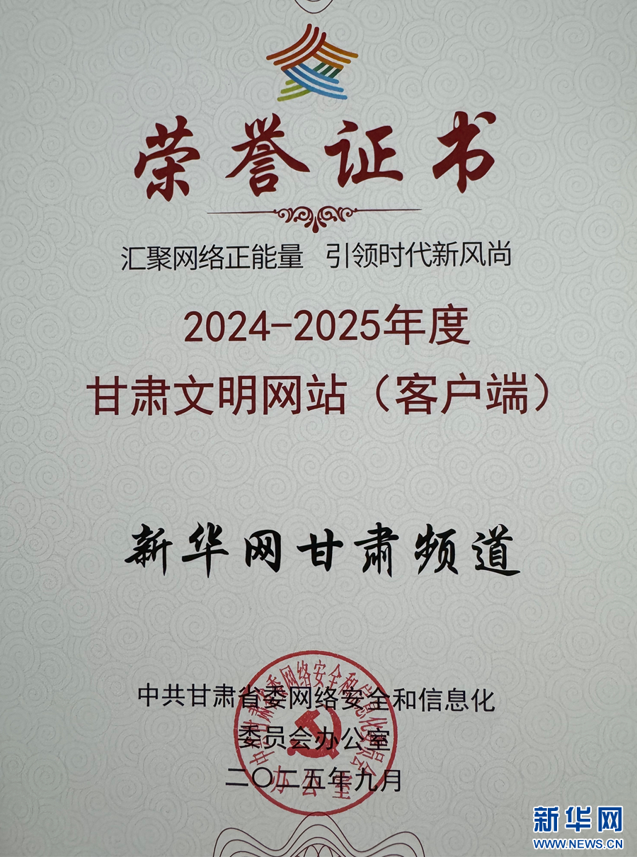 新華網甘肅頻道獲評“2024—2025年度甘肅文明網站(客戶端)”稱號。