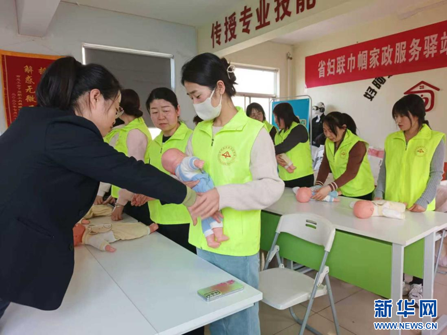 圖為蘭州市城關(guān)區(qū)酒泉路巾幗家政服務(wù)驛站舉辦母嬰護(hù)理技能培訓(xùn)班。(甘肅省婦聯(lián)供圖)