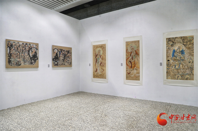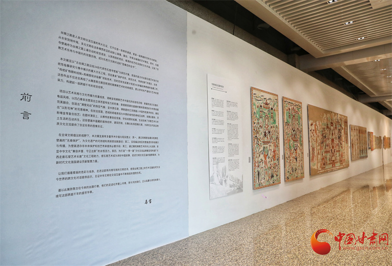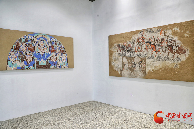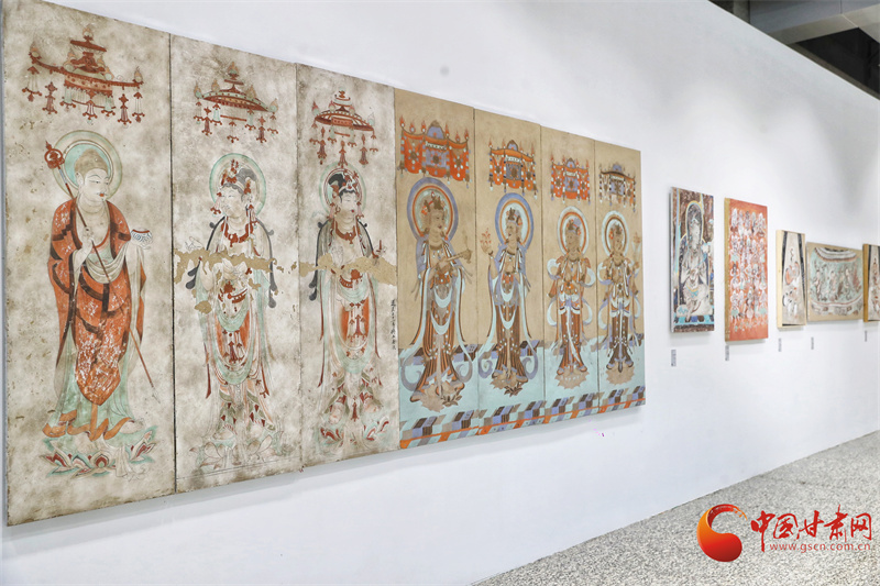 第八屆敦煌文博會“絲路華彩·盛世華章——敦煌及絲路沿線地區(qū)石窟寺壁畫藝術(shù)傳播與展示”專展,西北師范大學(xué)敦煌學(xué)院馬寶團(tuán)隊帶來了絲路沿線34個石窟寺壁畫臨摹作品,以及流失海外的壁畫精品臨摹作品,系統(tǒng)梳理了以河西走廊石窟群為代表的絲綢之路沿線石窟壁畫藝術(shù),讓全世界的觀眾可以更直接參觀熠熠生輝的絲綢之路經(jīng)典壁畫。