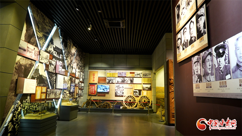 其中,巨幅半景畫配多媒體投影再現(xiàn)沈家?guī)X、營盤嶺、竇家山激戰(zhàn)。下沉式電子沙盤動態(tài)演示三軍合圍蘭州態(tài)勢。展柜陳列國家檔案局、中央檔案館調(diào)取的戰(zhàn)役電報(bào)、烈士證件、支前小車等原件290余件。