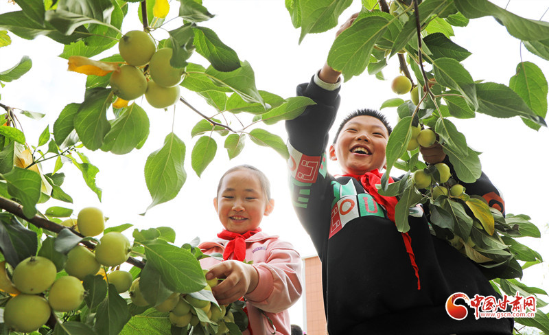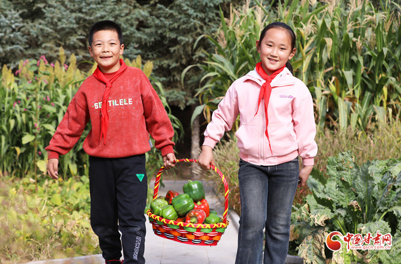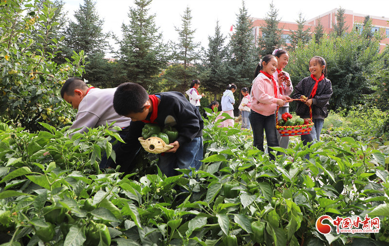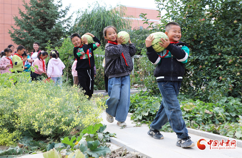 近日,民樂縣金山小學舉辦校園“豐收節(jié)”,師生們在校園農場里采摘蘋果、西瓜、辣椒、茄子等農作物,享受豐收的喜悅和勞動的快樂。