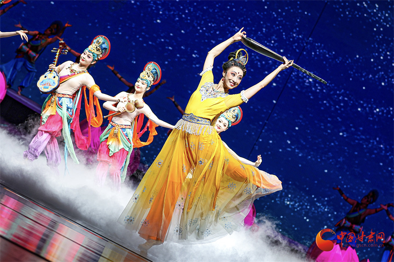 當全息投影將莫高窟壁畫在舞臺上緩緩展開,當駝鈴聲與電子樂編曲交織出跨越時空的和弦,觀眾相信,所謂“傳統(tǒng)”從不是凝固的標本,而是流動的生命,正如劇中穿越千年的花雨,落在古代畫工的筆端,落在當代舞者的袖間,浸潤海內(nèi)外每一位觀演者的心田。劇中描繪的中外友好通商、民心交融場景,更是對新時代“一帶一路”倡議的生動詮釋。(甘肅省文化旅游廳供圖)