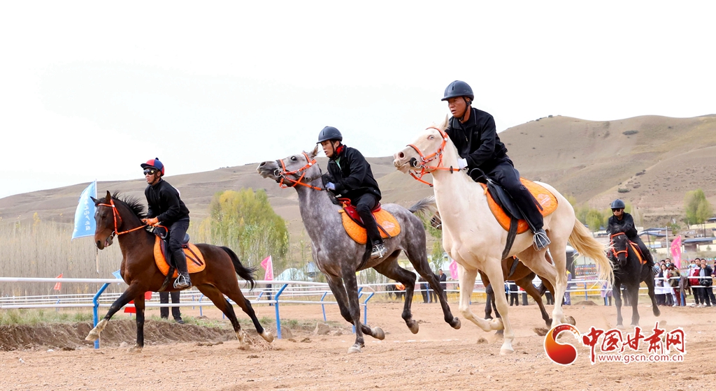 10月14日,山丹縣的一場(chǎng)賽馬會(huì)上,騎手們正策馬揚(yáng)鞭,為游客展示多項(xiàng)馬術(shù)項(xiàng)目。山丹縣毗鄰祁連山自然保護(hù)區(qū)和山丹軍馬場(chǎng),坐擁優(yōu)質(zhì)草場(chǎng)資源,養(yǎng)馬歷史逾兩千年,馬文化底蘊(yùn)深厚,產(chǎn)業(yè)基礎(chǔ)扎實(shí)。近年來(lái),當(dāng)?shù)貒@馬文化主題,建設(shè)了賽馬場(chǎng)、觀光馬道、育馬基地等設(shè)施,致力于為游客與馬術(shù)愛(ài)好者打造一個(gè)獨(dú)具特色的馬文化體驗(yàn)地。
