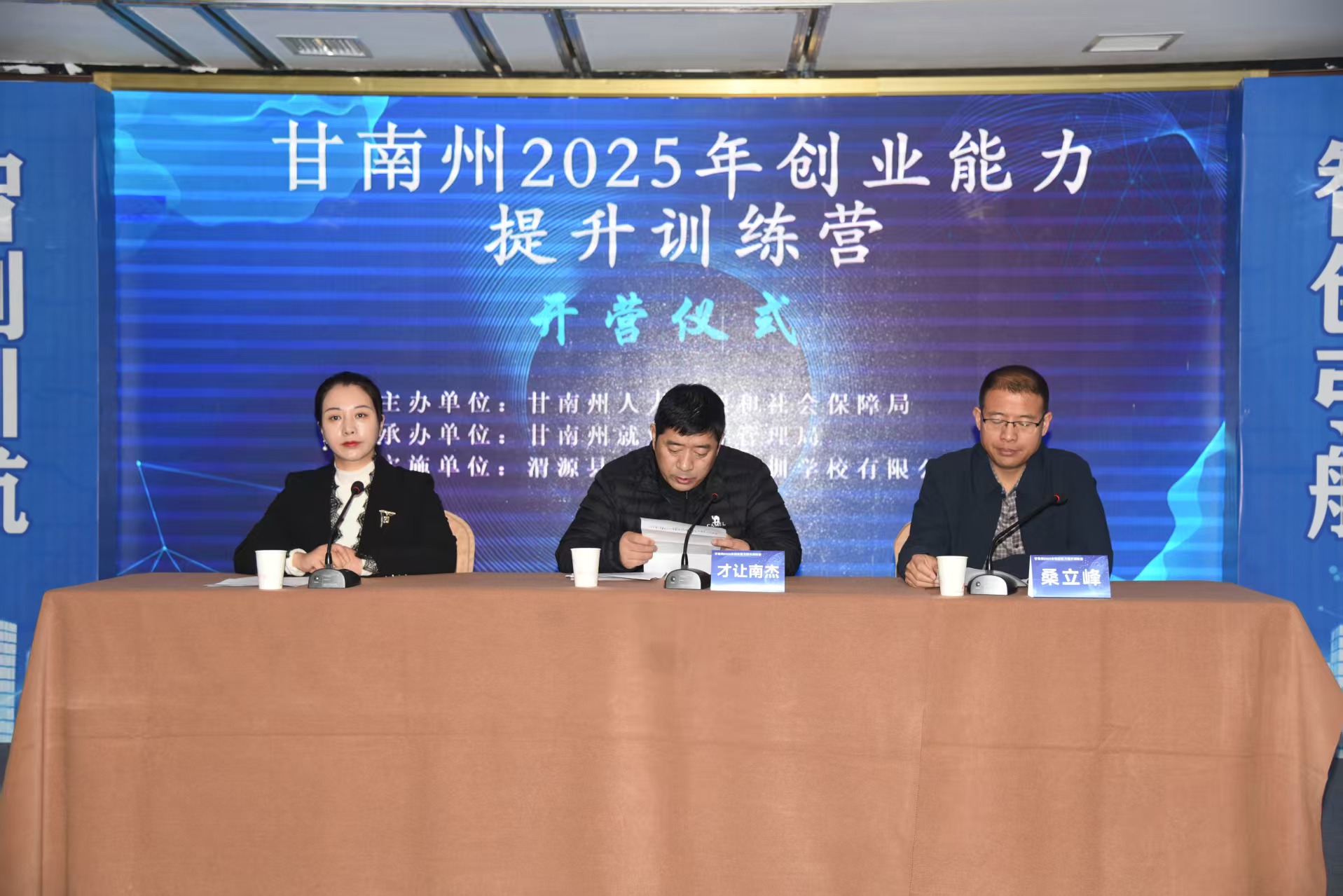 儀式上,甘南州就業(yè)服務(wù)管理局副局長才讓南杰發(fā)表了熱情洋溢的致辭。他指出,舉辦此次創(chuàng)業(yè)能力提升訓(xùn)練營,是落實省委就業(yè)工作專題調(diào)研座談會精神的具體行動,也是聚焦創(chuàng)業(yè)主體培育、提升創(chuàng)業(yè)服務(wù)效能、推動高質(zhì)量充分就業(yè)的務(wù)實舉措。近年來,甘南州人社系統(tǒng)堅決貫徹落實省委省政府、州委州政府決策部署,深入實施就業(yè)優(yōu)先戰(zhàn)略,持續(xù)完善創(chuàng)業(yè)政策體系,強化創(chuàng)業(yè)服務(wù)支撐,優(yōu)化創(chuàng)新創(chuàng)業(yè)環(huán)境,有效激發(fā)了全州創(chuàng)業(yè)熱情,形成了政府鼓勵、社會支持、大眾參與的創(chuàng)業(yè)新格局。