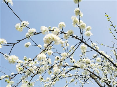 這棵早李很矮小,還沒有我的個(gè)子高。我還有一棵李樹,是江安李,樹齡有15年,就高大多了。一個(gè)月以后,江安李就會開花了。不像早李開花這么羞澀,它一大團(tuán)一大團(tuán)地開,在藍(lán)天之下就像燦爛的積雪。這兩棵李樹的先后開花,正是春天巨人淺一腳深一腳踩過我的小花園留下的腳印,前一腳淺,后一腳深。無論深淺,雁過留影,都會濺起美麗的白霜或積雪。而且,這腳印還深深地留在每朵李花的子房里,先開的早李苦澀,后開的江安李甜美,它們記錄了春天里的掙扎和怒放。