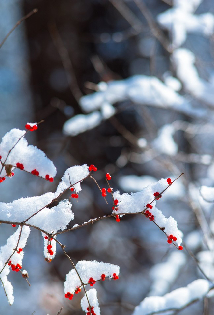 許多人走到這里,停下了腳步,被這雪后滿樹熱烈的紅色吸引。風(fēng)在這個時刻,沒有了聲息,似乎是因?yàn)檫@一簇炫目的紅。天空是清澈透明的藍(lán),空氣中彌漫著清冽的干枯植物的氣息,這氣息來自頂著雪花的干草、沉睡的樹木、滄桑的松柏、埋藏在雪下的紅隼的羽毛、雨燕干燥的糞便,以及鳥雀熱愛的金銀木酸甜可口的果實(shí)。