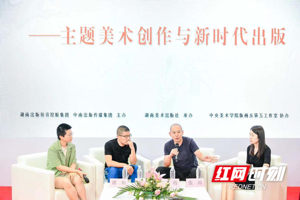 湖南省委宣傳部部務(wù)會成員、省政府新聞辦副主任于金旺,湖南美術(shù)出版社社長、總編輯黃嘯出席活動并致辭,中央美術(shù)學(xué)院教授、碩士生導(dǎo)師康劍飛,以及中央美術(shù)學(xué)院版畫系第五工作室主任武將等領(lǐng)銜的《少年毛澤東》創(chuàng)作團隊帶來創(chuàng)作分享。