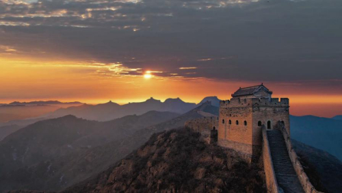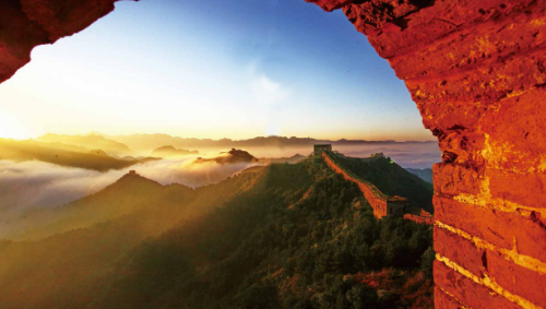跨峻嶺,穿荒原,橫瀚海,經(jīng)絕壁,縱橫十萬里。望不斷長(zhǎng)龍烽垛,雄關(guān)隘口,猶如玉帶明珠,點(diǎn)綴成江山錦繡。起伏奔騰,飛舞盤旋,長(zhǎng)城就是中國(guó)人給這個(gè)世界增添的偉大奇跡。