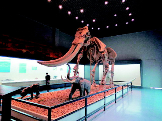 平?jīng)霾┪镳^隴東劍齒象化石模型。