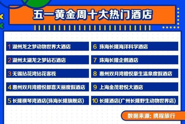 數(shù)據(jù)顯示,攜程酒店預(yù)訂間夜以及GMV在假期前三天連續(xù)突破平臺(tái)歷史峰值,對(duì)比2019年同期,單日訂單量增幅最高達(dá)70%。湖州龍之夢(mèng)動(dòng)物世界大酒店、湖州太湖龍之夢(mèng)鉆石酒店、無(wú)錫拈花灣拈花客棧、惠州雙月灣檀悅都喜天麗度假酒店、長(zhǎng)隆橫琴灣酒店(珠海長(zhǎng)隆旗艦店)、珠海長(zhǎng)隆海洋科學(xué)酒店、珠海長(zhǎng)隆企鵝酒店、惠州雙月灣檀悅豪生溫泉度假酒店、上海金茂君悅大酒店、長(zhǎng)隆酒店(廣州長(zhǎng)隆野生動(dòng)物世界店)為今年“五一”黃金周熱門(mén)酒店TOP10。