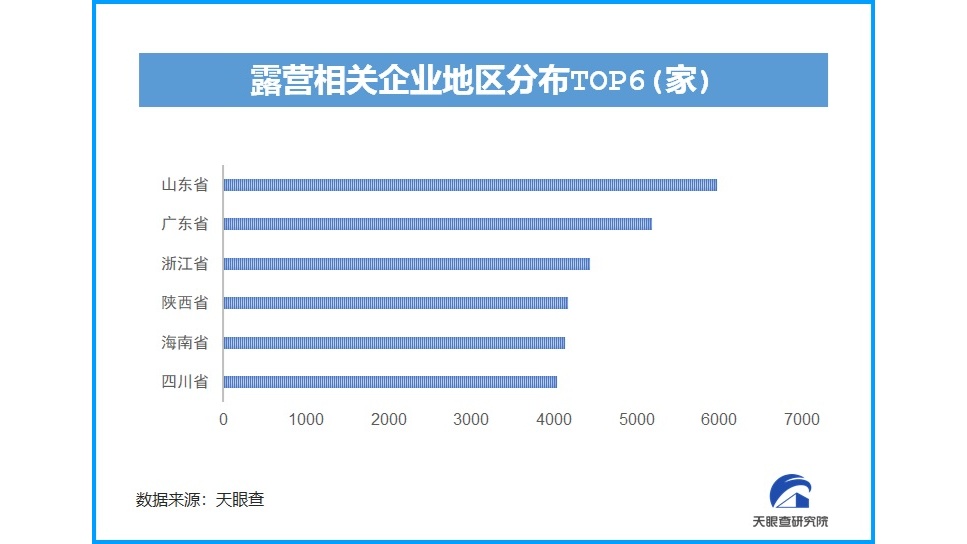 人們被疫情壓抑了的旅游需求,在露營(yíng)市場(chǎng)得到釋放。根據(jù)天眼查大數(shù)據(jù),我國目前已有超過6.6萬家與露營(yíng)相關(guān)的企業(yè),近3年露營(yíng)相關(guān)企業(yè)注冊(cè)總量增長(zhǎng)迅猛。在地域分布上,山東的露營(yíng)相關(guān)企業(yè)數(shù)量最多,近6000家。廣東、浙江、陜西、海南、四川等緊隨其后,均超過4000家。