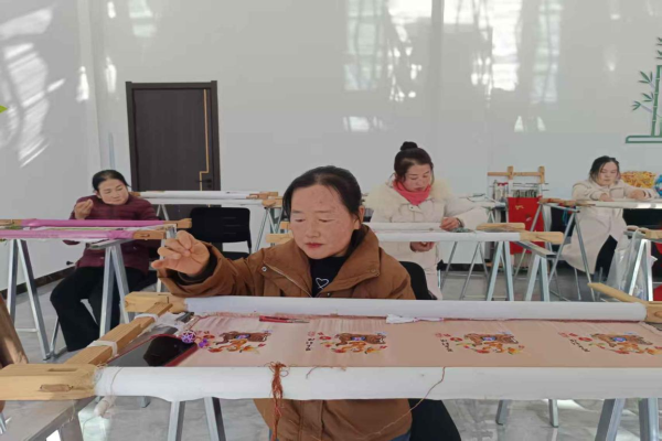 “以前特別自卑,不敢出門。”袁紅艷是一名殘疾人,曾經(jīng)的她因身體缺陷長期封閉自我。轉變始于2005年一次鄉(xiāng)鎮(zhèn)刺繡培訓,在這場培訓活動中,她結識了左煥茸老師,從此踏入刺繡行業(yè)。